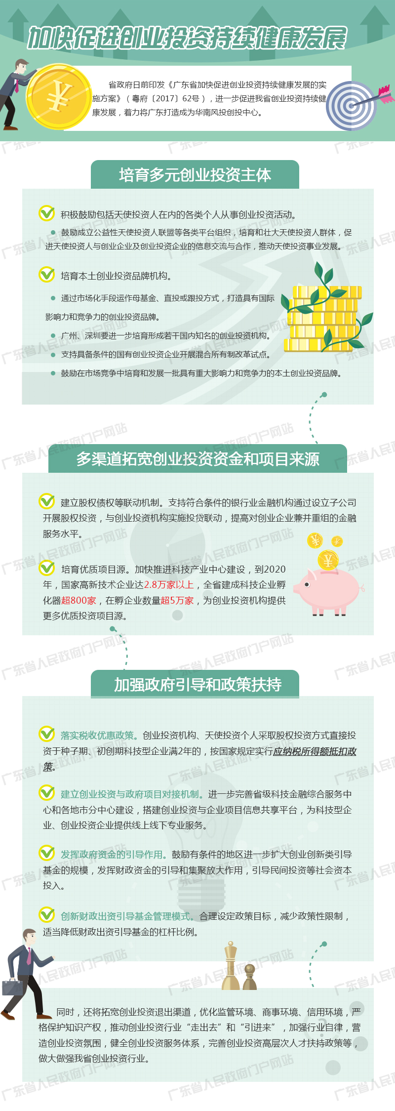 为贯彻落实《国务院关于促进创业投资持续健康发展的若干意见》(国发〔2016〕53号),进一步促进我省创业投资持续健康发展,着力将广东打造成为华南风投创投中心,制定本方案。