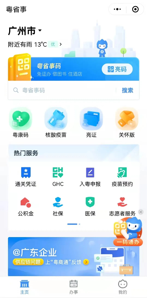 渠道二:“粤省事”小程序