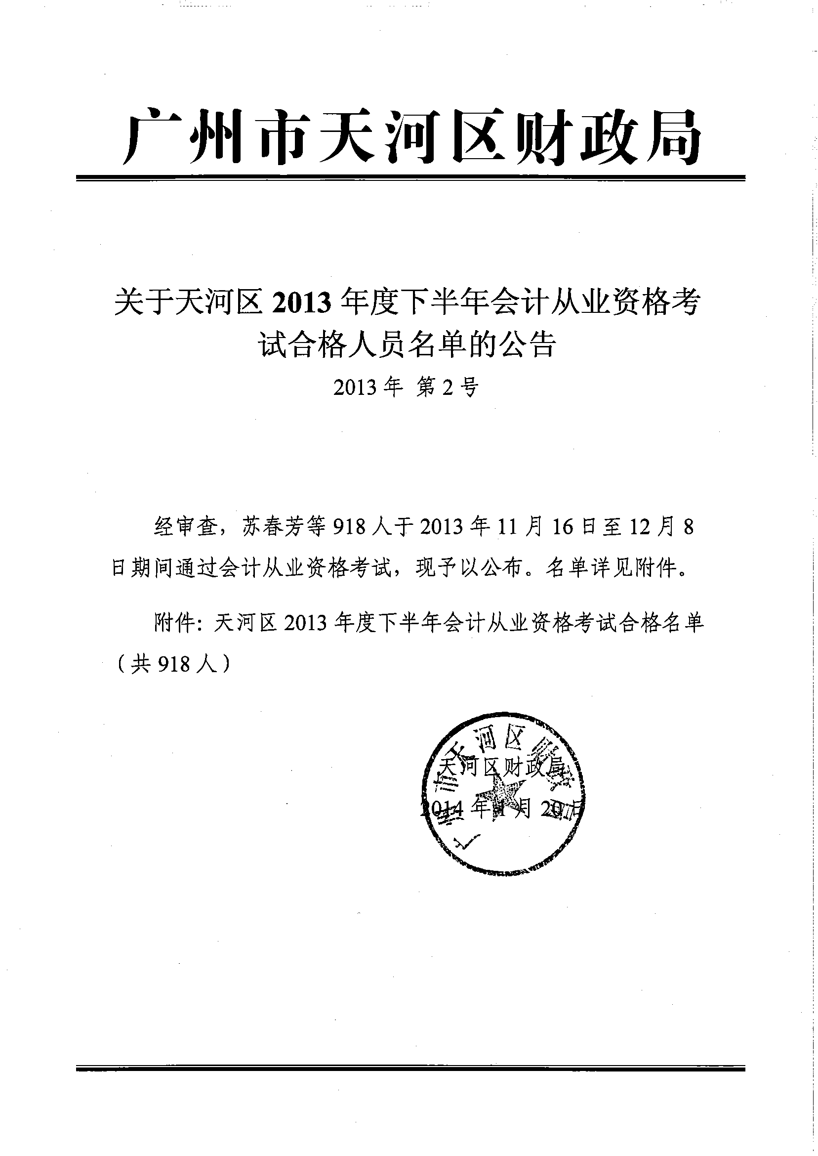 OB体育 2013年度下半年会计从业资格考试合格名单(共918人).rar