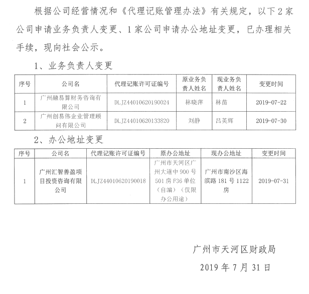 OB体育 财政局关于2019年7月下旬代理记账机构信息变更的公示