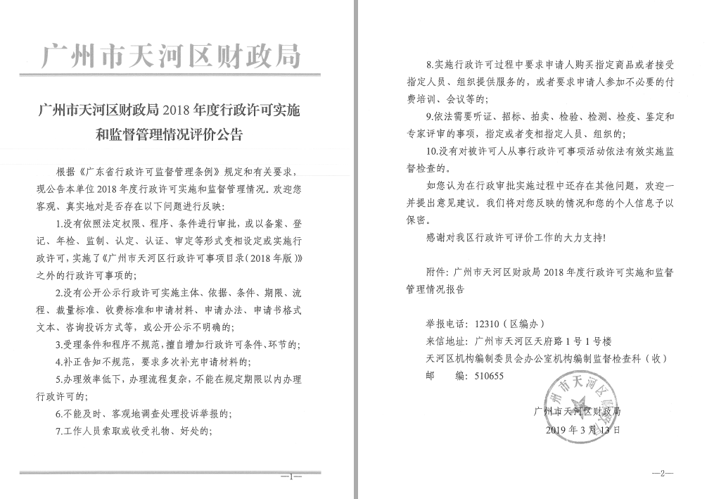 OB体育 财政局2018年度行政许可实施和监督管理情况评价公告