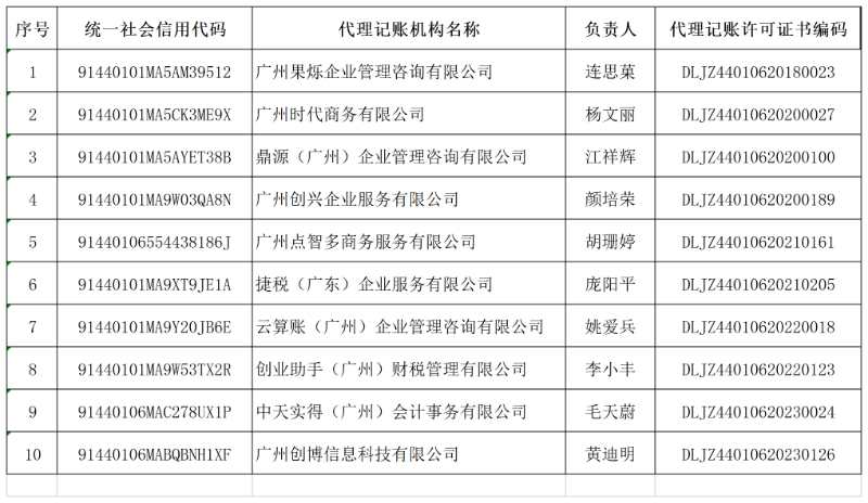 根据《代理记账管理办法》(财政部令第98号)第十六条规定,代理记账机构应当于每年4月30日之前,向审批机关报送下列材料:(一)代理记账机构基本情况表(附表);(二)专职从业人员变动情况。截至2024年6月7日,部分代理记账机构未按要求进行年度备案。根据《代理记账管理办法》第二十二条规定,OB体育 财政局对未备案机构下达了《责令限期改正通知书》。截至规定期限及本公示日,下列代理记账机构仍未整改。现将未备案机构及其负责人名单列入重点关注名单,并进行社会公示。
