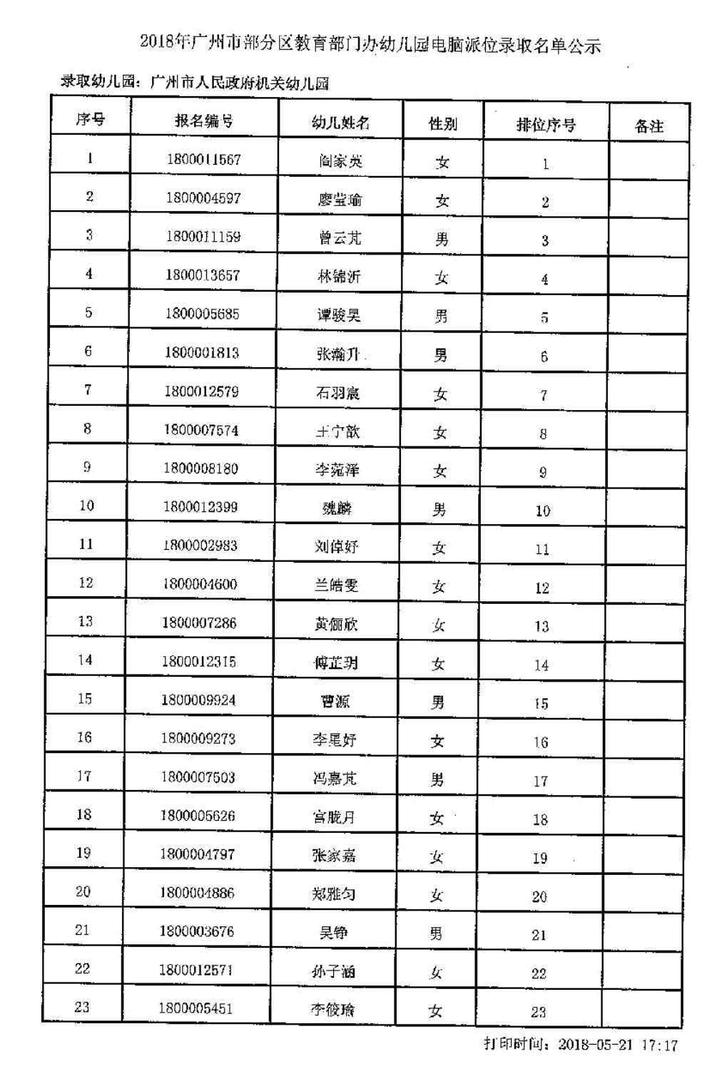 2018年OB体育 教育部门办幼儿园电脑派位录取名单公示