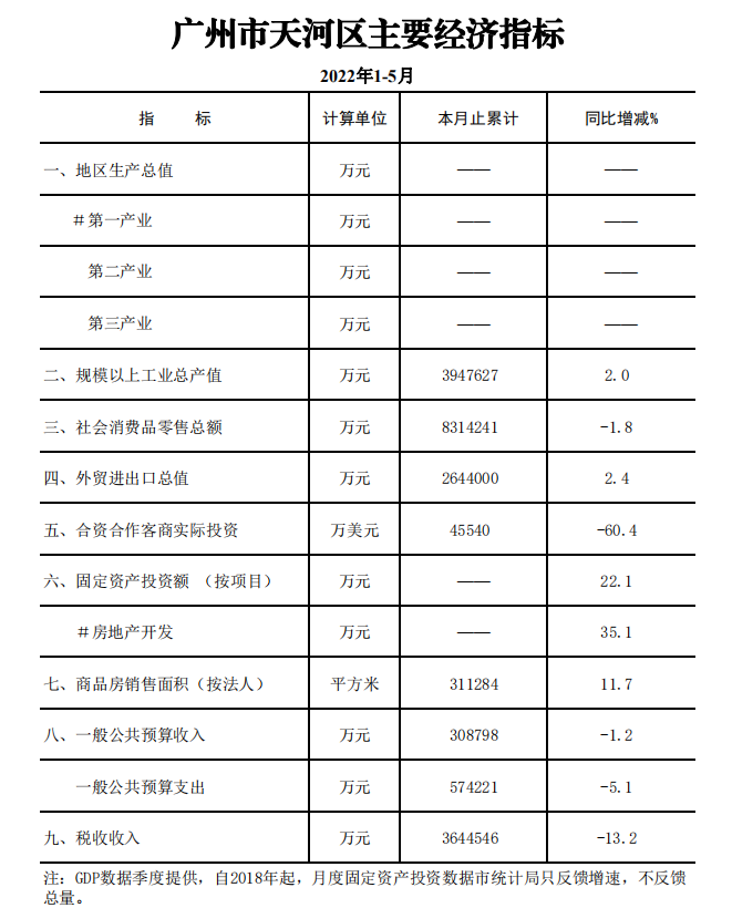 2022年1-5月OB体育 主要经济指标