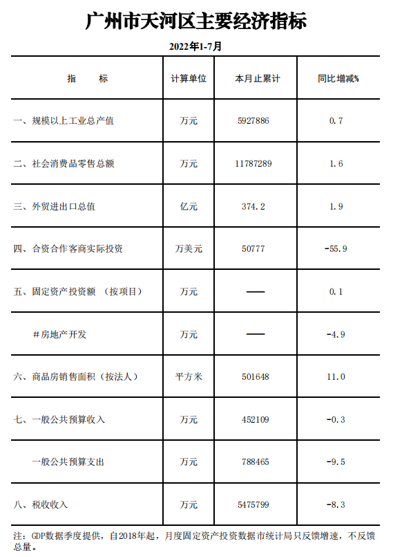 2022年1-7月OB体育 主要经济指标