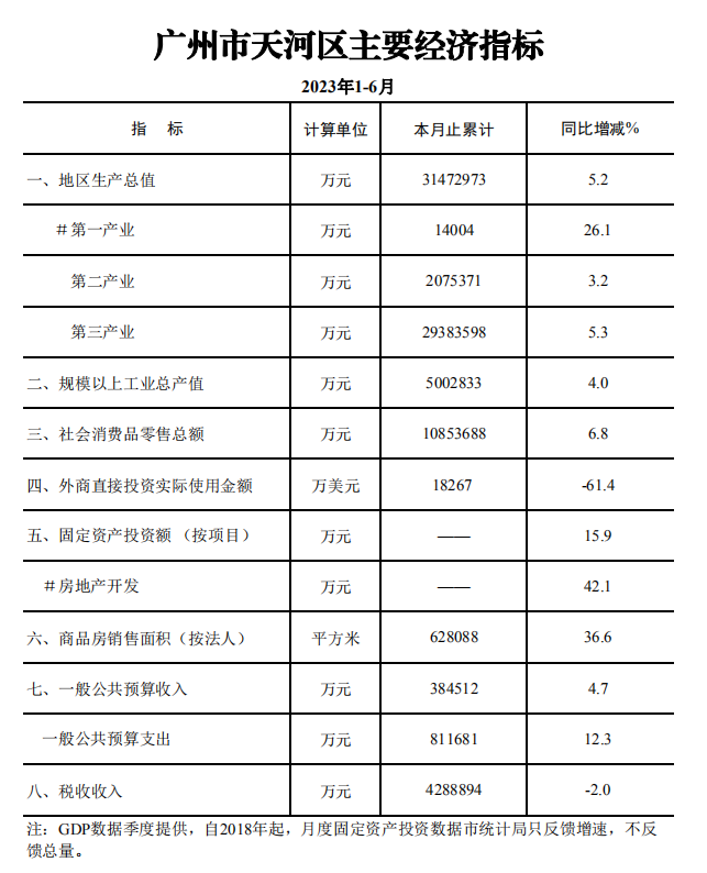 2023年1-6月OB体育 主要经济指标