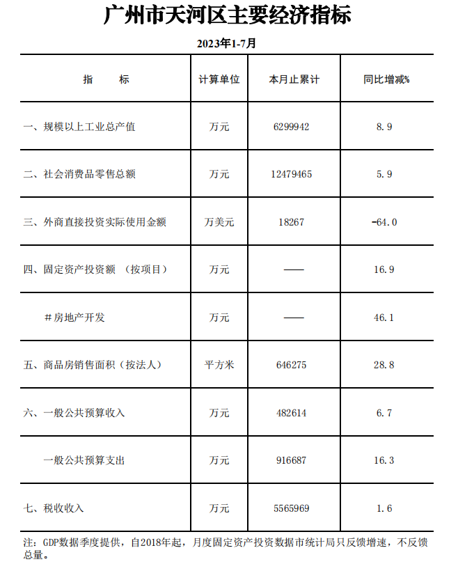 2023年1-7月OB体育 主要经济指标