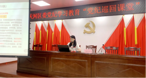 与形式单一的“授课”不同,巡回课堂以党员干部群众喜闻乐见、具有天河特色的形式,为基层党员、干部带来别开生面的党纪学习教育课。“党纪巡回课堂”紧密结合社区、村公司的案例进行讲解,既是《条例》解读会,又是警示教育课。