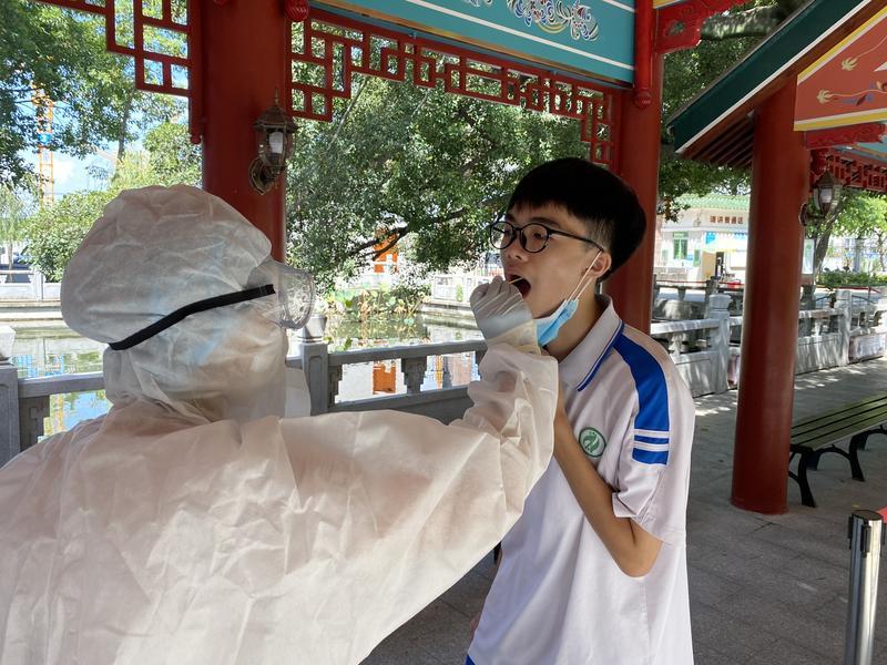 华南师大附中的同学们正在进行核酸检测。