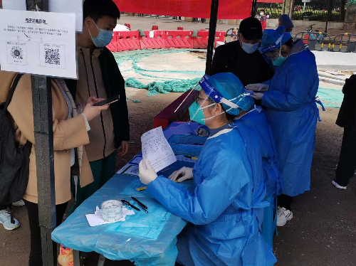 志愿者们积极维持现场秩序,认真检查健康码,并指导市民提前在手机上预约登记信息,生成采样二维码,提高核酸采样速度,缩短排队时间。