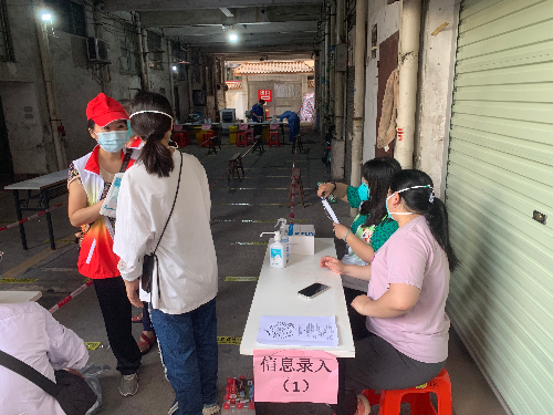 4月12日,车陂街社联会、车陂龙舟文化促进会迅速组织一支检测服务志愿者队伍,截至下午两点,共招募了21名的社区志愿者,协助车陂街社区第二轮全员大规模核酸检测。
