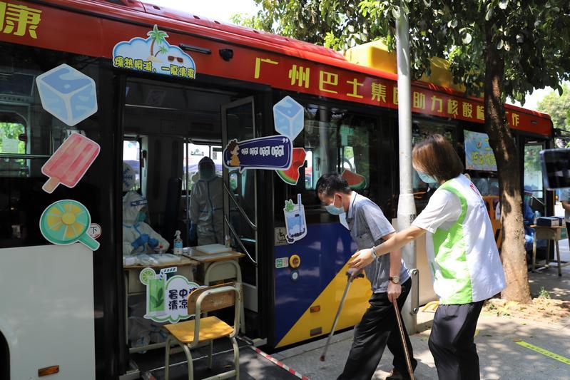 “我们根据街道核酸采样工作的需求,精心挑选一批车质车况良好、空调降温快的公交车打造成便民核酸检测车,定时对车厢进行全面清洁和消毒,确保车辆安全卫生;提前开启空调,等车厢温度降下来后才投入使用,有效改善核酸采样人员在高温天气下的工作环境。”广州巴士集团相关负责人介绍称。