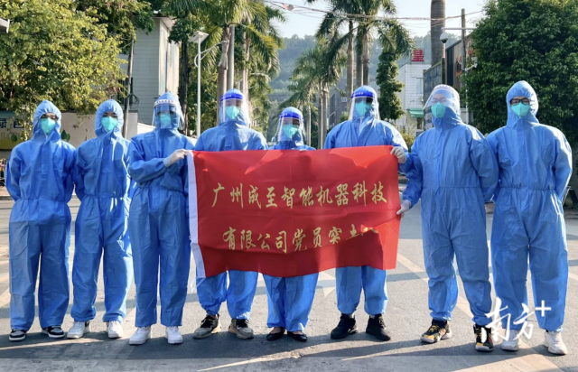在无物业管理的城中村,如何宣传好防疫知识,及时传递防疫信息?一台无人机可以覆盖多个社区,解决了核酸动员和防疫宣传“最后一米”的问题。而无人机则来自于街道企业广州成至智能机器科技有限公司,疫情防控阻击战打响后,成至智能党支部迅速动员全体党员、入党积极分子和青年志愿者,投入到园区疫情防控的志愿工作中去。同时,利用自身的技术优势,派在外飞手协助龙洞街道使用公司自主研发的无人机喊话器进行空中广播。