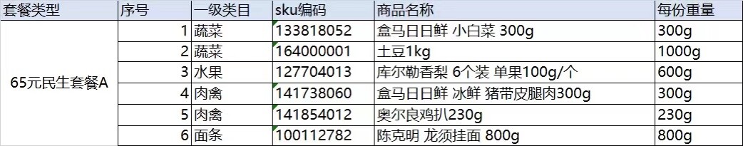 内居民套餐采购需求及货款,并告知盒马鲜生工作人员(黄小姐,13503082153),将于次日上午配送至卡口。
