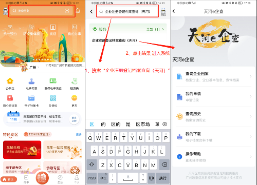 12日上午,广州网易计算机系统有限公司成为首个体验“天河e企查”的企业。该公司党委副书记吴宇厦告诉记者,只要登录穗好办App,搜索“企业注册登记档案查询(天河)”,点击“查询企业档案”,输入企业名称检索即可查询企业档案。“对于和我们合作的外部供应商,只要动动手指,企业名称、统一社会信用代码或注册号、市场主体状态等档案信息一目了然,大大方便了我们查询。”